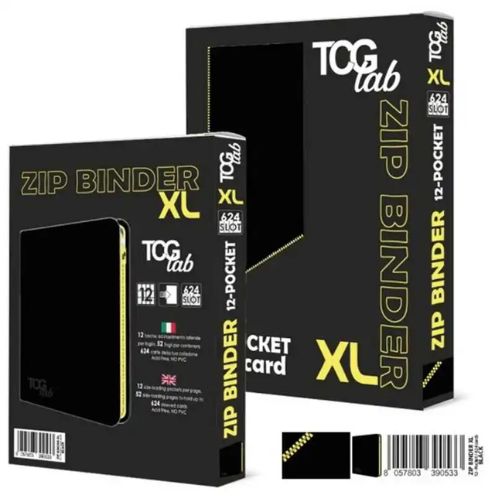 Che tu lo chiami raccoglitore XL con zip o XL zip binder, la versione a 12 tasche di TCGlab è pensata per chi ha già superato la capienza di un raccoglitore standard. Con 624 slot disponibili e la stessa qualità acid free, no PVC e cerniera perimetrale del modello base, rappresenta la soluzione più completa della linea TCGlab per gestire collezioni importanti. Disponibile su Il Covo del Nerd nella versione nera con zip gialla.