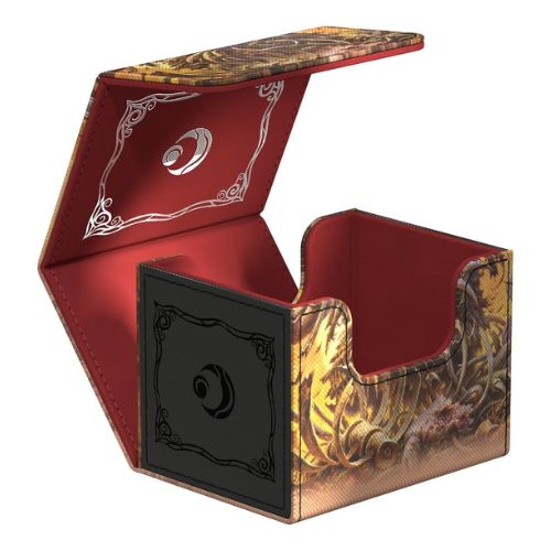 La compatibilità con i sistemi di archiviazione modulare Omnihive, Superhive e Smarthive di Ultimate Guard permette di integrare questo deck box nella tua collezione esistente. I pannelli laterali nero opaco con decorazioni in rilievo aggiungono un tocco di eleganza gotica e migliorano la presa, mentre il bordo rosso bordeaux incornicia perfettamente l’artwork centrale, creando un equilibrio visivo impeccabile.