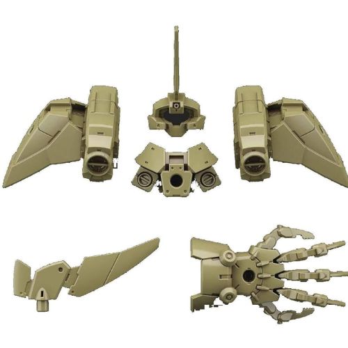 Il set include due grandi propulsori alari con cannoni a doppia canna integrati, un elemento centrale per il torso, un braccio/ala supplementare, un connettore per il collo e una mano artigliata meccanica a dita separate. Tutti i componenti sono realizzati in plastica verde oliva opaca, con una tonalità militare che si abbina perfettamente all’estetica tattica del Cielnova. La compatibilità modulare tipica del sistema 30MM consente inoltre di sperimentare combinazioni con altri kit della stessa linea, offrendo possibilità di personalizzazione praticamente illimitate.