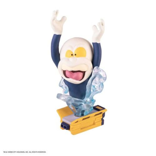 Ogni dettaglio di questa figure da collezione è curato per rispettare l’estetica della serie animata originale. Lo zaino protonico è riprodotto fedelmente con il cannone a particelle agganciabile, mentre la trappola con cartuccia intercambiabile aggiunge una componente interattiva che rende ogni posa ancora più espressiva. Il fantasma blu con base, ispirato al fantasma introduttivo della serie, completa un set di accessori davvero generoso per questa scala.