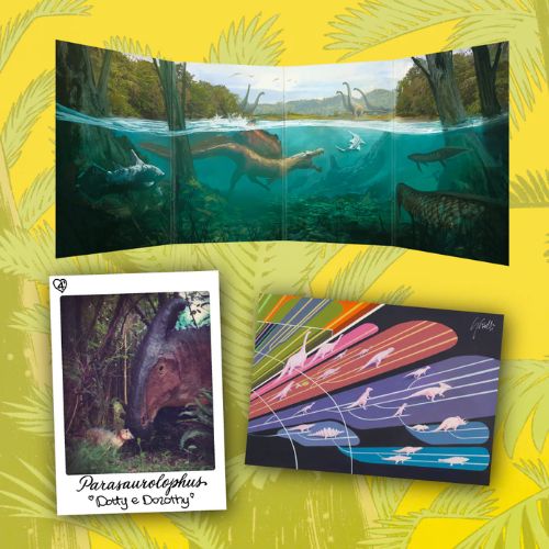 Ogni box di carte collezionabili include anche tre tipologie di carte speciali garantite: le Landscape Cards, carte olografiche apribili a libretto da 4 pagine che rivelano 9 panorami di formazioni geologiche (1 per box); le Safari Cards, 9 dinosauri in scala 1:1 su carta fotografica (3 per box); e le Masterpiece Cards della serie Giovanni Caselli, illustrazioni restaurate dell’antropologo italiano stampate su carta usomano da 450 grammi con firma pressata a caldo (3 per box).