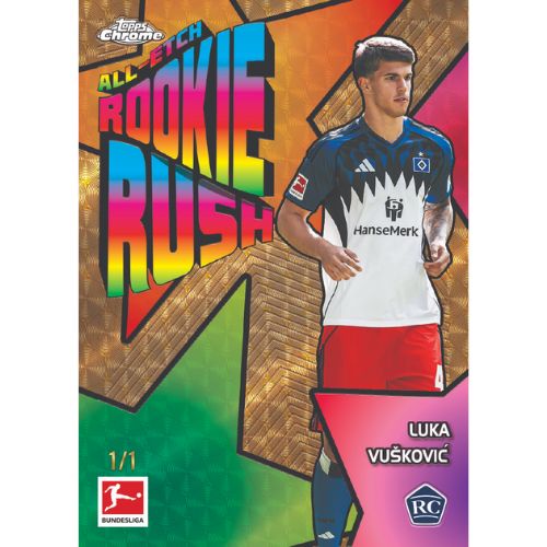 Il set base da 100 carte è interamente realizzato su tecnologia Chrome, con le rookie card chiaramente identificate dal simbolo RC. Tra i talenti emergenti di questa stagione spiccano Lennart Karl, Luka Vušković, Yan Diomande e Saïd El Mala. Le parallele disponibili nella Value Box includono le Pulsar Refractor, quattro delle quali garantite per ogni box, oltre alle esclusive Mini-Diamond Refractor. L’inserto Black Spektrum Limited Edition, mutuato dal format Match Attax e rielaborato in chiave Chrome, è esclusivo del formato Value e cade una volta per box, rappresentando già da solo una delle carte più interessanti da trovare in questa configurazione.