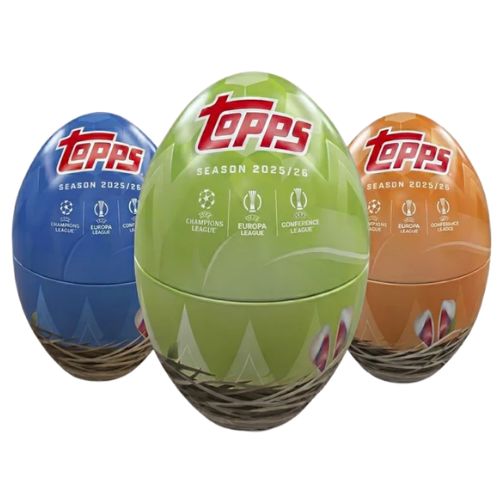 Ogni Spring Tin a forma di uovo garantisce tre parallele esclusive a tema primaverile che non si trovano in nessun altro formato della collezione. Le carte base coprono i più grandi protagonisti della stagione europea 2025/26, con rookie, stelle affermate e leggende del calcio continentale. Le tin fortunate possono contenere autografi e parallele numerate in serie limitata.