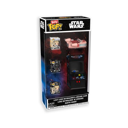 Conosciuto anche come set iniziale Bitty Pop Star Wars o Funko Bitty City Star Wars Starter Pack, si distingue per la varietà dei formati inclusi: non solo figurine classiche, ma anche elementi interattivi come lo Speeder e il cabinato Arcade.