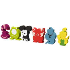 In questa versione oltre alle carte, ogni elemento è brandizzato. Al posto delle classiche pedine coniglietto, avrete per esempio dei personaggi tratti dall’immaginario Disney, ognuno di un colore diverso, con relativo indicatore di voto a tema!