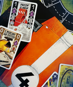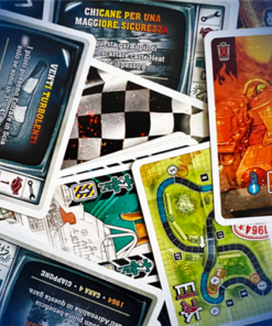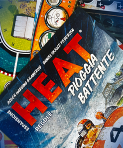 Contenuto: 1 tabellone a due lati (2 circuiti), 2 carte Circuito, 1 automobile da corsa e la corrispondente pedina Leva del Cambio, 1 plancia Giocatore, 12 carte Base, 15 carte Heat e 5 carte Stress, 15 carte Miglioria, 7 carte Sponsor, 4 carte Evento, 1 blocchetto segnapunti, 1 regolamento.