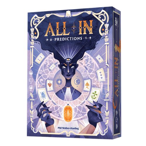 All In – Predictions è il gioco di carte firmato Phil Walker-Harding e pubblicato da Next Move Games che reinterpreta la struttura classica dei giochi di mano in chiave fantasy. Nei panni di Divinatori dotati di poteri speciali, i giocatori cercano di comporre la mano più forte, manipolare le carte in tavola e — soprattutto — predire chi avrà la meglio. Ogni round è un equilibrio tra calcolo, intuizione e azzardo, in un’atmosfera visivamente sontuosa con illustrazioni in tonalità viola, blu e oro.
