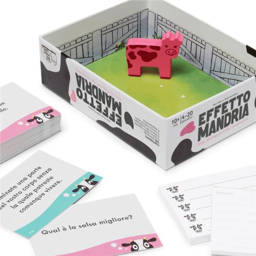 Effetto Mandria Mini è perfetto per compleanni, cene con amici, serate in famiglia e riunioni di gruppo numeroso. La sua forza sta nella scalabilità: funziona splendidamente sia con 4 persone che con 20, rendendolo uno dei pochi party game davvero adatti a gruppi grandi. Le domande sono volutamente aperte e trasversali, pensate per far emergere risposte spontanee e inaspettate che inevitabilmente scatenano discussioni e risate. Non serve nessuna preparazione e nessuna conoscenza di cultura nerd specifica: basta saper pensare come tutti gli altri, ammesso che ci si riesca.