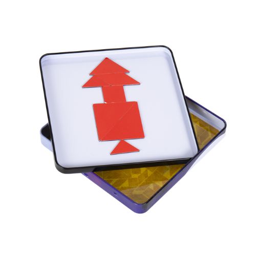 I 7 pezzi magnetici del Tangram tascabile si compongono dei classici elementi geometrici del gioco originale: triangoli di dimensioni diverse, un parallelogramma e un quadrato. Il sistema magnetico li mantiene in posizione sulla superficie interna della scatola, rendendo ogni sessione di gioco ordinata e senza frustrazioni. Il libretto degli obiettivi fornisce una serie di sagome da ricostruire, adatte sia a chi si avvicina al Tangram per la prima volta sia a chi cerca sfide più elaborate.