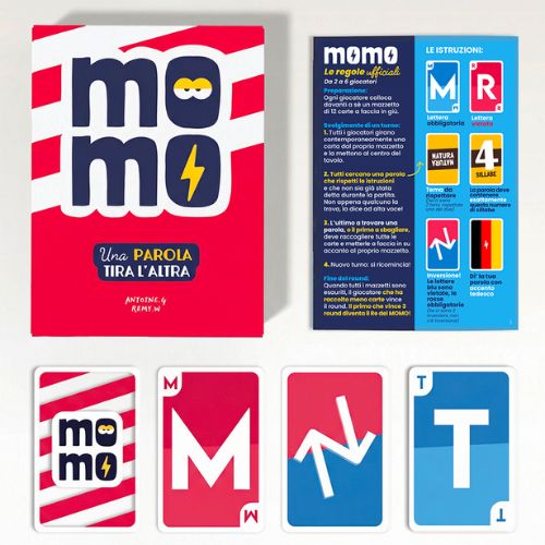 Perfetto per famiglie con ragazzi dagli 8 anni, gruppi di amici e appassionati di giochi linguistici veloci, Momo funziona benissimo come riscaldamento prima di una serata più lunga o come gioco principale quando il tempo è poco. Le partite durano circa un quarto d’ora, il che lo rende uno dei pochi giochi che si riesce a fare davvero anche tra una cosa e l’altra. Il formato compatto permette di portarlo facilmente in borsa.