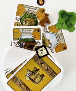Contenuto: 1 estensione del tabellone di gioco, 1 plancia risorse per le grandi migliorie, 52 tessere foresta/brughiera, 6 tessere stanza di legno/campo, 2 estensioni fattoria, 6 letti in tre parti, 25 cavalli in legno, 10 segnalini “utilizzato”, 2 segnalini speciali, 55 segnalini combustibile, 6 segnalini sostitutivi, 1 carta copertura, 9 carte di partenza, 10 carte azione speciale, 14 grandi migliorie, 117 piccole migliorie, 1 blocco segnapunti, 1 regolamento.