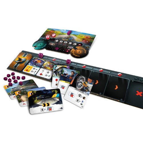 - Componenti principali: 1 plancia Stage, 4 plance Racing Team, 4 plance giocatore, 219 carte, 20 carte Guidatore, 23 dadi, token danno, token effetto, token navigatore, segnalini e pedine auto
