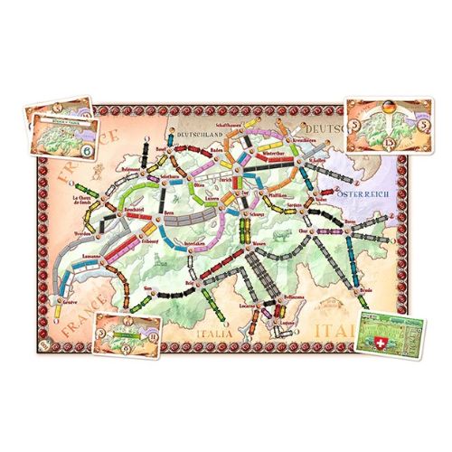 - Mappa Svizzera — progettata specificamente per partite a 2 e 3 giocatori, con una rete ferroviaria che attraversa valli alpine e valichi di montagna; include rotte verso le nazioni confinanti (Francia, Germania, Austria, Italia) che si possono raggiungere solo collaborando con gli avversari