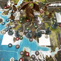 Contenuto: 35 Miniature di Plastica, 6 Eroi, 2 Navi, 27 Nemici, 4 Basi Colorate, 4 Plance dell’Eroe, 4 Sacchetti di Rune, 1 Tabellone della Mappa, 1 Tabellone dell’Avventura, 1 Tabellone dei Punti d’Interesse, 10 Schede dell’Avventura, 2 Mappe dell’Avventura, 378 Carte, 267 Segnalini, 1 Regolamento, 1 Tomo delle Saghe.