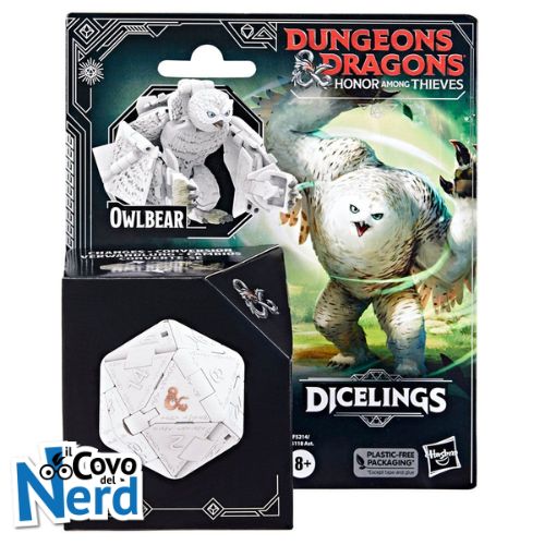 Rotola per la trasformazione! Otterrai uno spasso da questo Owlbear, uno dei tanti mostri che popolano i regni di Dungeons & Dragons. Con Dicelings, ora puoi collezionare una action figure di tipo D&D completamente nuova: una che puoi cambiare da un d20 gigante a un mostro e viceversa!