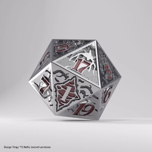 Come oggetto da esposizione, questo dado si distingue per la sua presenza scenica. La finitura cromata riflette la luce creando giochi visivi affascinanti, mentre le incisioni dettagliate rivelano nuovi particolari ad ogni osservazione. Perfetto per essere esposto su mensole dedicate, in teche illuminate o accanto ad altre memorabilia di Stranger Things.