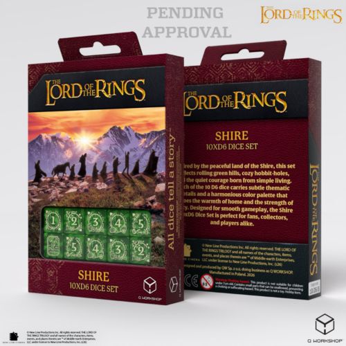 Il Set Dadi RPG Shire di The Lord of the Rings è un tributo alla forza tranquilla della Contea, quel luogo dove colline verdeggianti, focolari accesi e semplicità nascondono un coraggio del tutto inaspettato.