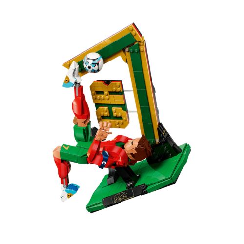 - MERCHANDISING DI CRISTIANO RONALDO: ricco di dettagli, il set da calcio LEGO® include un grande fondale con CR7, unatarga con la firma stampata e una maglia numero 7, oltre a un nuovo volto co-stampato e un elemento pallone da calcio