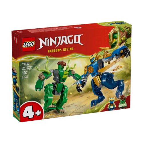 Con questo divertente mech giocattolo, i bambini e le bambine dai 4 anni in su possono imparare a costruire e ricreare le scene di battaglia della stagione 4 del programma televisivo NINJAGO® La rivolta dei draghi. Il giocattolo d’avventura Duellocon il Drago-Mech di Jay LEGO® NINJAGO (71853) contiene 2 mech e 2 minifigure.