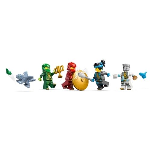 Questo set LEGO contiene 4 minifigure NINJAGO: Zane, Nya, Kai e Lloyd, piùil drago Baby Riyu, così i bambini possono ricreare tutta l’azione ninja. Le minifigure possono essere posizionate su 2 basi girevoli per battaglie epiche, e per tanto valore di gioco in più c’è una vasta gamma di accessori: armi ninja, tra cui 2 spade e 3 bastoni, oltre a un martello, un uccello, una rana, un trofeo, un biscotto e una lettera.