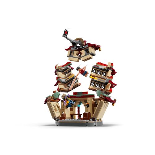 Il set da costruzione contiene le minifigure di Luffy – con pezzi per allungare le sue braccia – Nami, Usopp, Arlong e Chu. I bambini possono far crollare il modello della pagoda durante la battaglia toccandolo sulla parte superiore, mentre il tiro a segno offre ai bambini divertenti bersagli da colpire con gli shooter. Il cattivo Arlong può essere posizionato su un trono all’interno dell’edificio dell’attacco degli squali. Chu può bere qualcosa nella baracca e la foresta contiene un’iconica bottiglia di ketchup. Questo set da gioco contiene anche shooter e accessori, tra cui 3 poster “Ricercato”. Per tanto divertimento digitale in più, i costruttori possono ingrandire, ruotare i modelli in 3D e seguire i loro progressi utilizzando l’intuitiva app LEGO Builder. Il set contiene 926 pezzi.