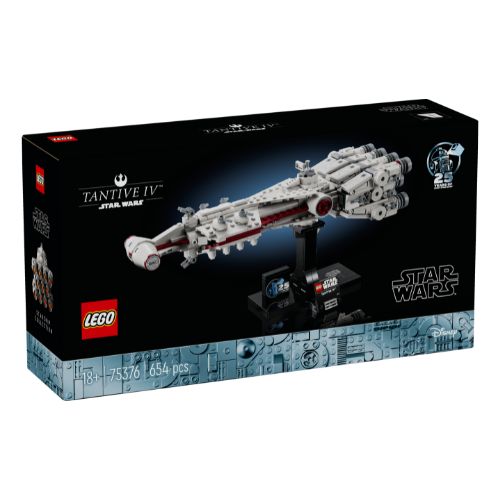 - Realizzato per l’esposizione: lo stand costruibile è dotato di targhetta e mattoncino del 25° anniversario LEGO® Star Wars™ ed è stato appositamente progettato per esporre la Tantive IV