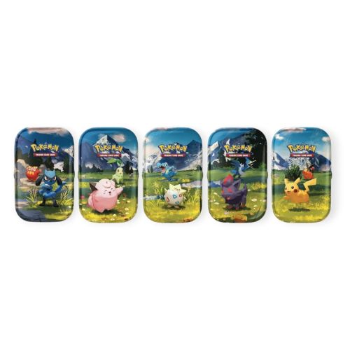>La grafica è assortita su 5 varianti: ogni tin ha un soggetto diverso tra i Pokémon della serie, e collezionarle tutte significa comporre un’immagine più grande attraverso le carte illustrate esclusive contenute all’interno.